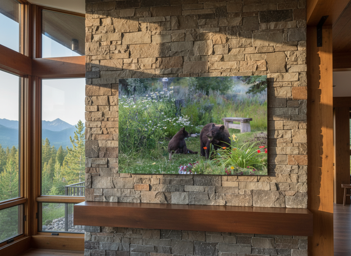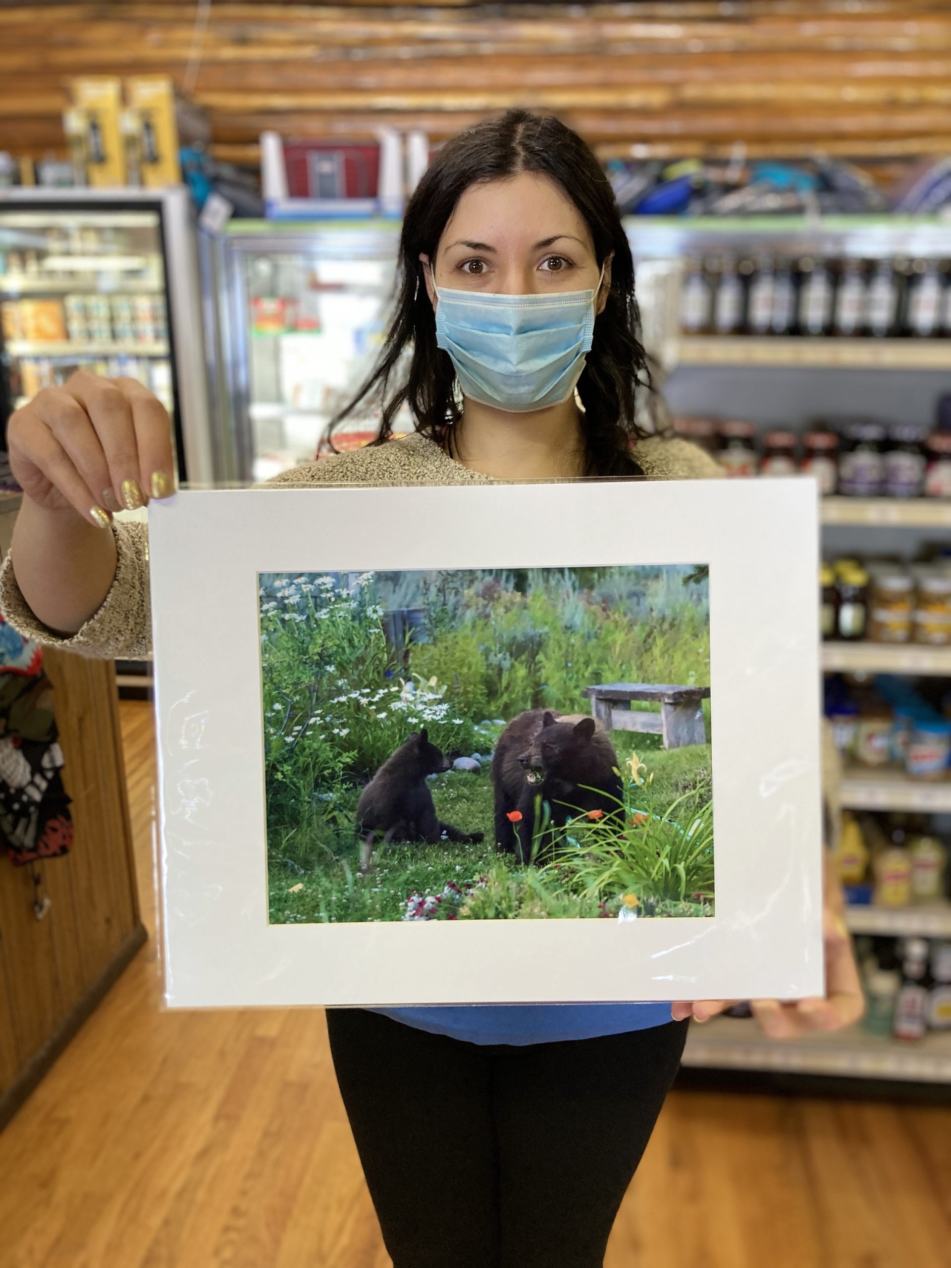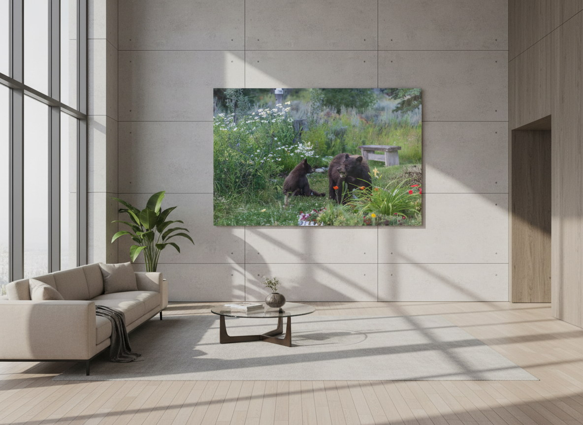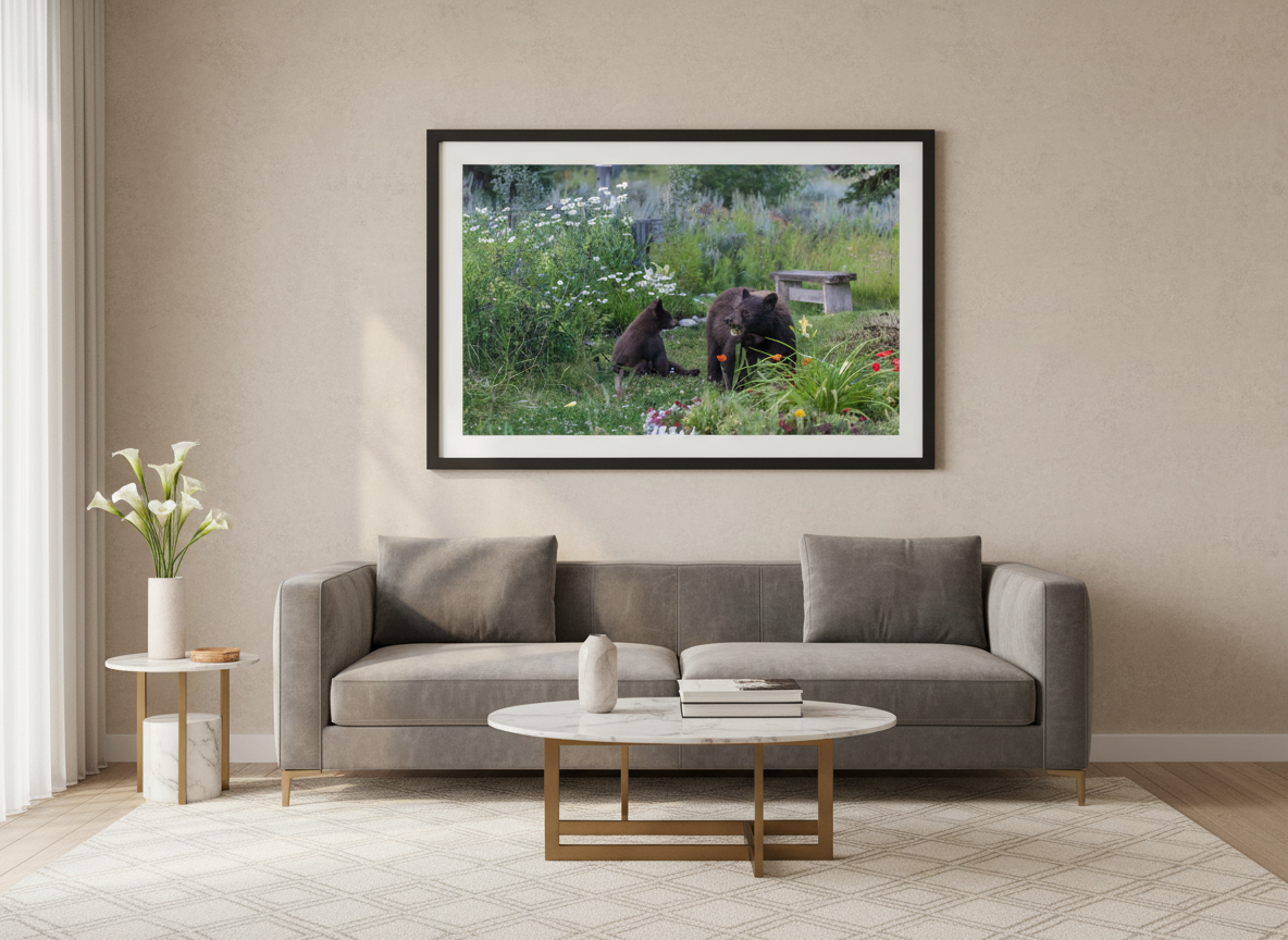 A black bear and her cub forage for clovers at Dornan’s, capturing the beauty of wildlife in Grand Teton National Park.