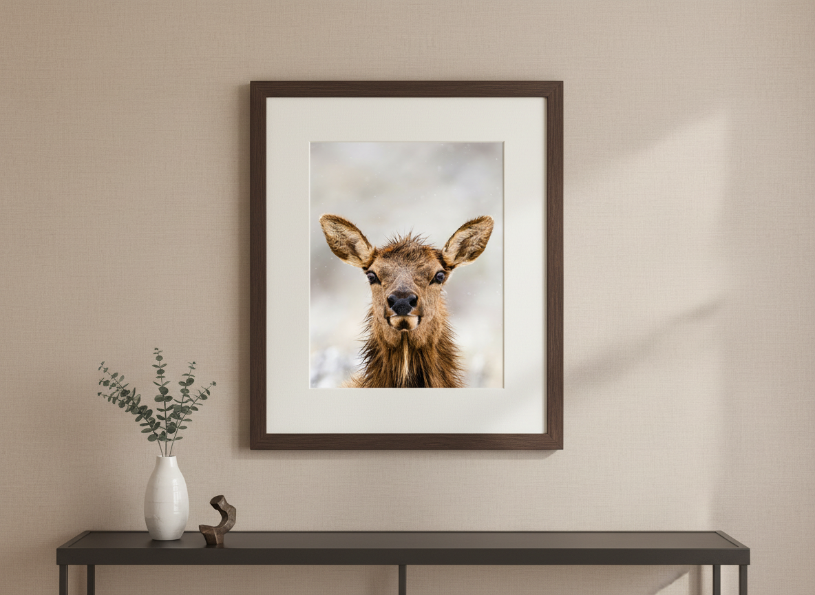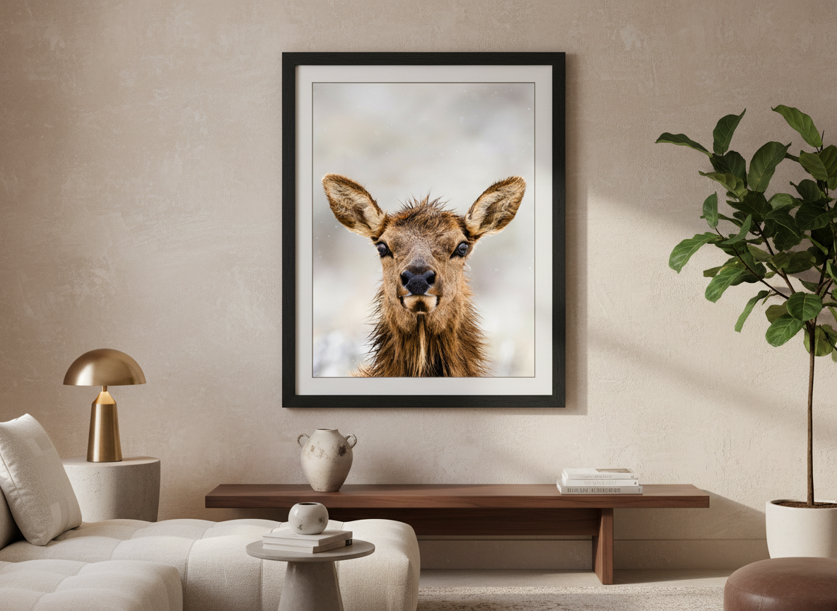 Bring a piece of Grand Teton National Park into your home with this breathtaking “Cow Elk Portrait Photograph.” Taken amidst the stunning landscapes of the Tetons, this image showcases the majestic beauty of a cow elk, a vital part of the wildlife in the Jackson Hole area. Each year, most elk from the Jackson Hole herd winter at the National Elk Refuge and migrate to higher elevations in Grand Teton and Yellowstone National Park for the summer. This portrait perfectly captures the serene elegance of the elk, known for their nurturing roles in the ecosystem. Ideal for wildlife enthusiasts and nature lovers alike, this print serves as a timeless reminder of the wild beauty of the American West.
