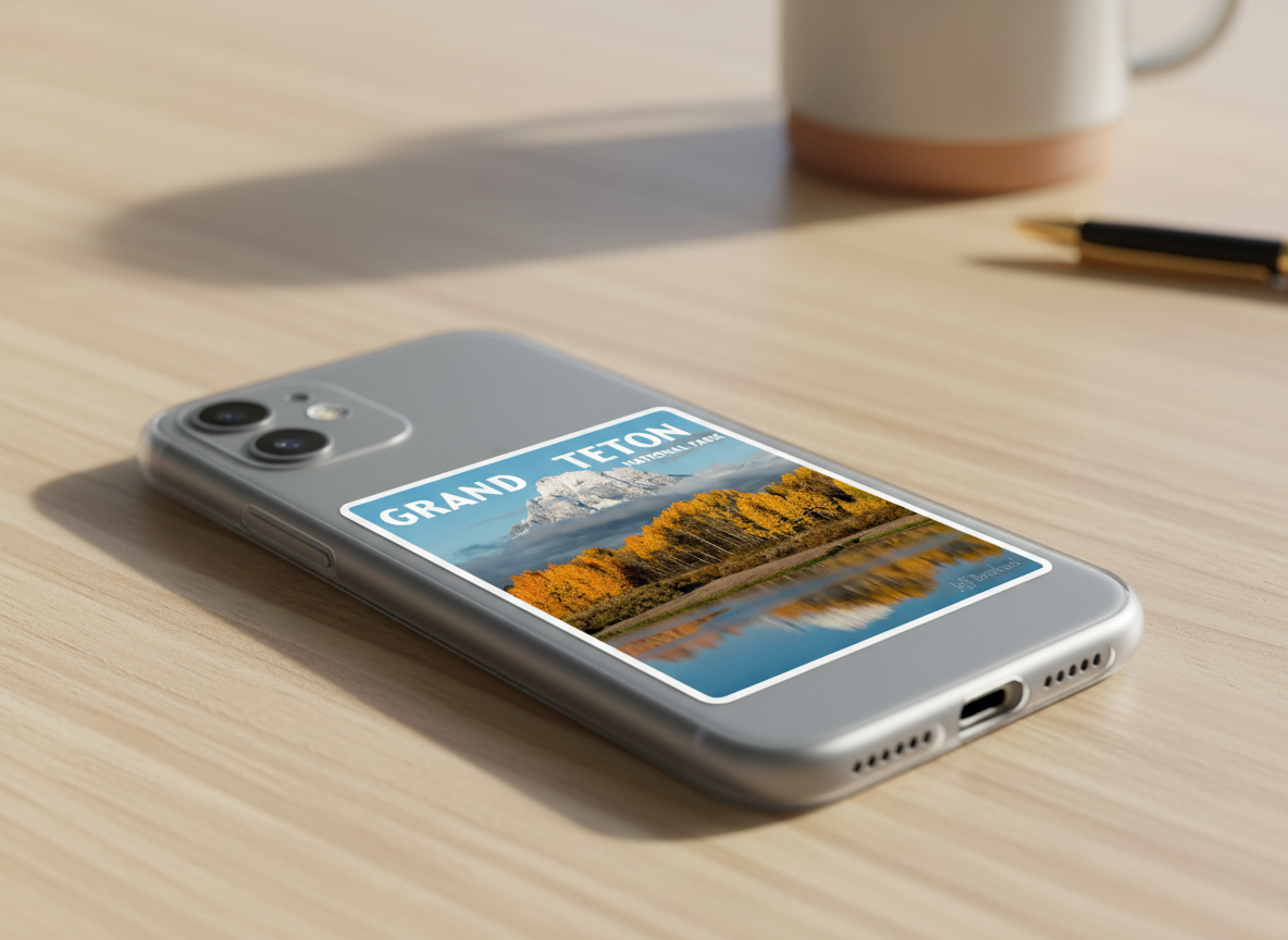 Showcase the breathtaking fall colors of Grand Teton National Park with this beautifully designed Mt. Moran sticker and magnet. Based on an actual photograph, this high-quality souvenir captures the golden hues of autumn against the rugged silhouette of one of Wyoming’s most famous peaks.
