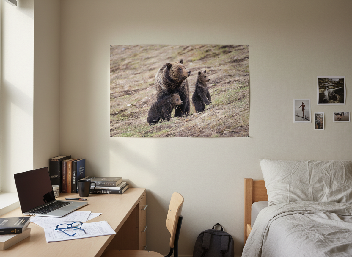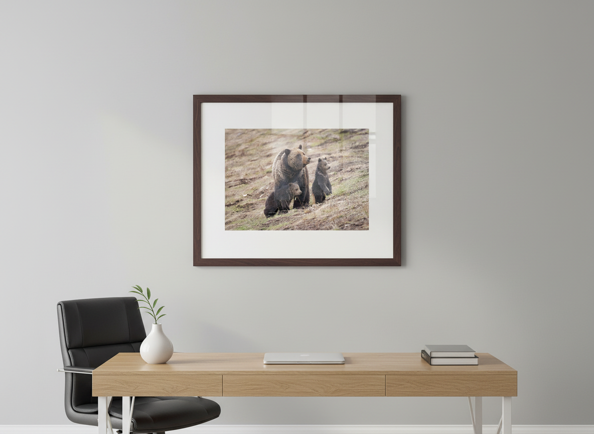 Immerse yourself in the wild beauty of Grand Teton National Park with this captivating photograph of Grizzly Bear 863, affectionately known as Felecia, and her two new cubs. Taken just outside the park, this stunning image captures the essence of nature’s majesty as Felecia and her cubs navigate the rugged terrain of Wyoming. As a longtime resident of Grand Teton, I am privileged to witness such intimate wildlife moments. This image is available as an open-edition print and makes for an extraordinary addition to any nature lover’s collection. Whether you’re a wildlife enthusiast or simply appreciate the untamed beauty of the Tetons, this print brings the raw energy of the wild into your space.