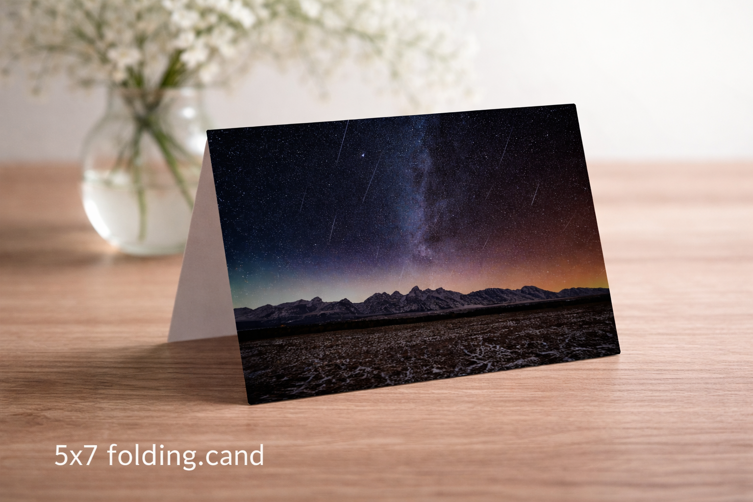 - 5×7 Folding Cards: Write your own greeting on a folding card your loved ones are sure to remember! These cards are made in the USA and ship fast from beautiful Moose, Wyoming in Grand Teton National Park. Folding cards include an envelope and are sealed in a clear cellophane bag to protect the quality. Cards are not limited edition and an unlimited amount of them will be sold.
