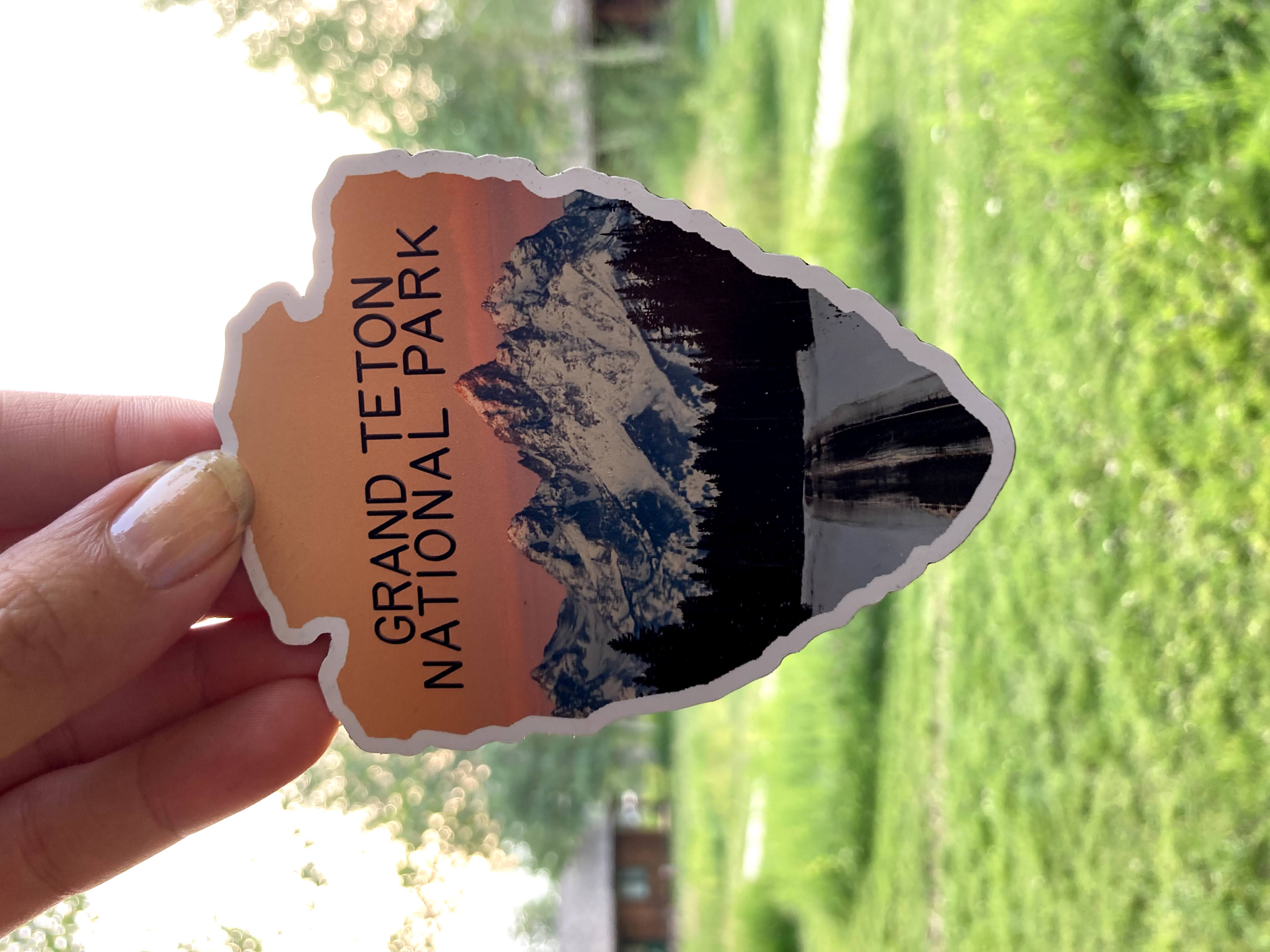 Bring the beauty of Grand Teton National Park wherever you go with this arrowhead-shaped sticker or magnet, featuring my original sunrise photography of the Tetons.