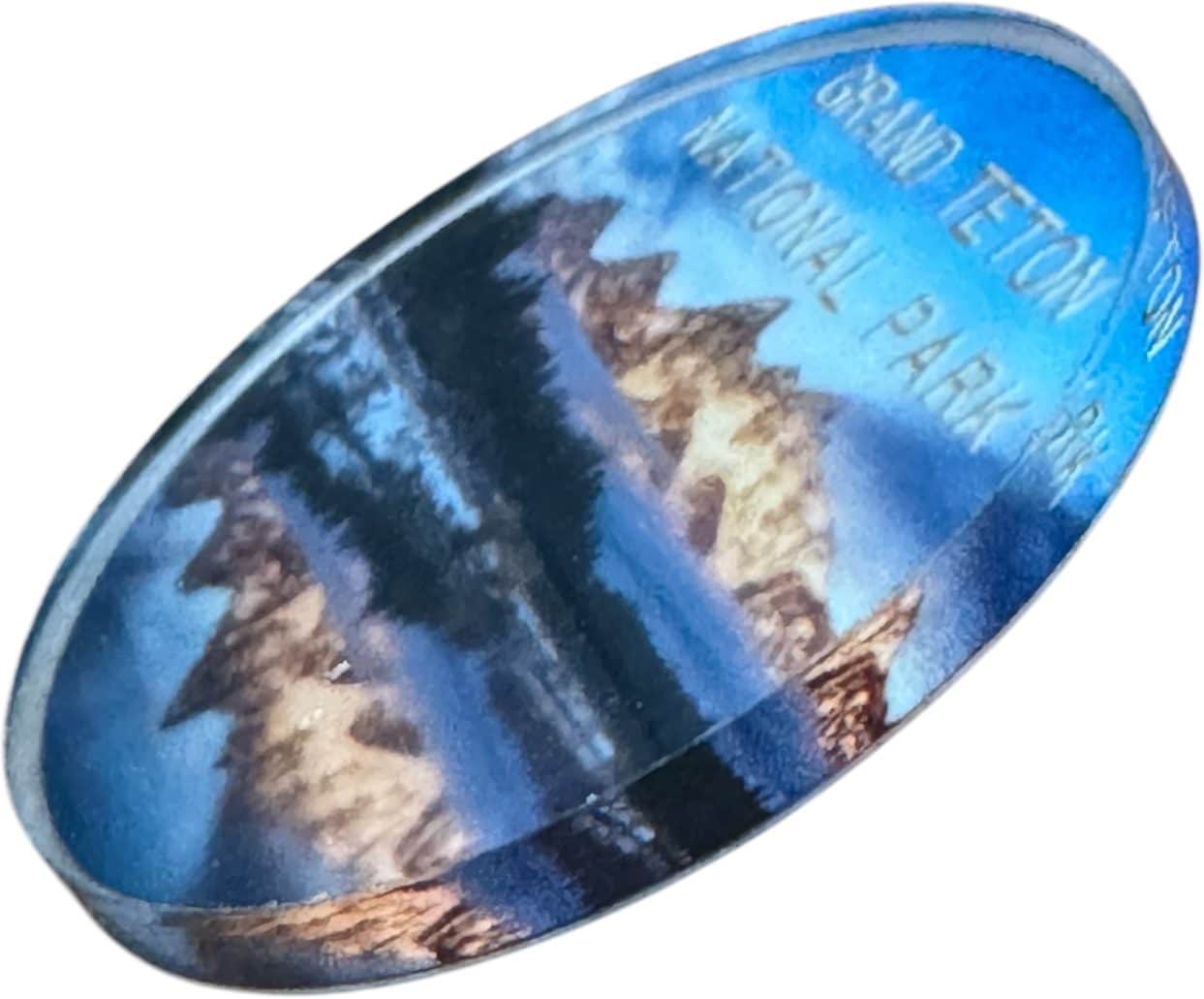 Celebrate the beauty of Grand Teton National Park with this stunning reflection pin, featuring my original photograph of the Tetons mirrored in the calm waters of Schwabacher Landing on the Snake River. Measuring approximately 1.5″ in diameter, this high-quality pin is perfect for backpacks, hats, jackets, or pin collections.