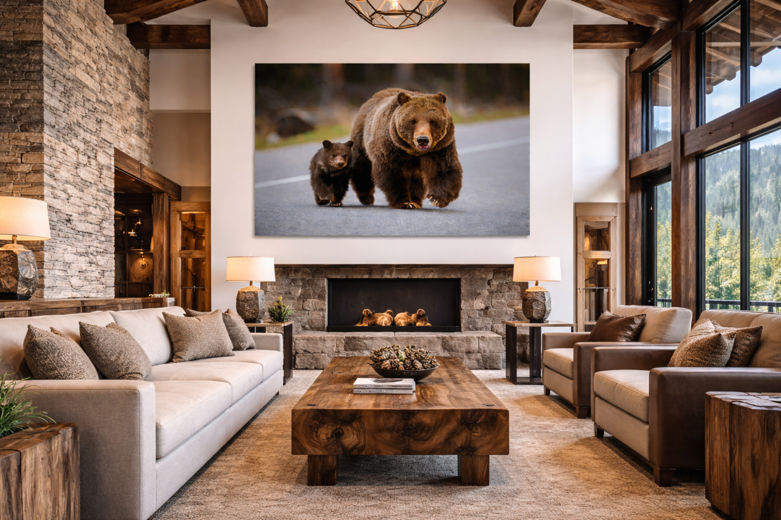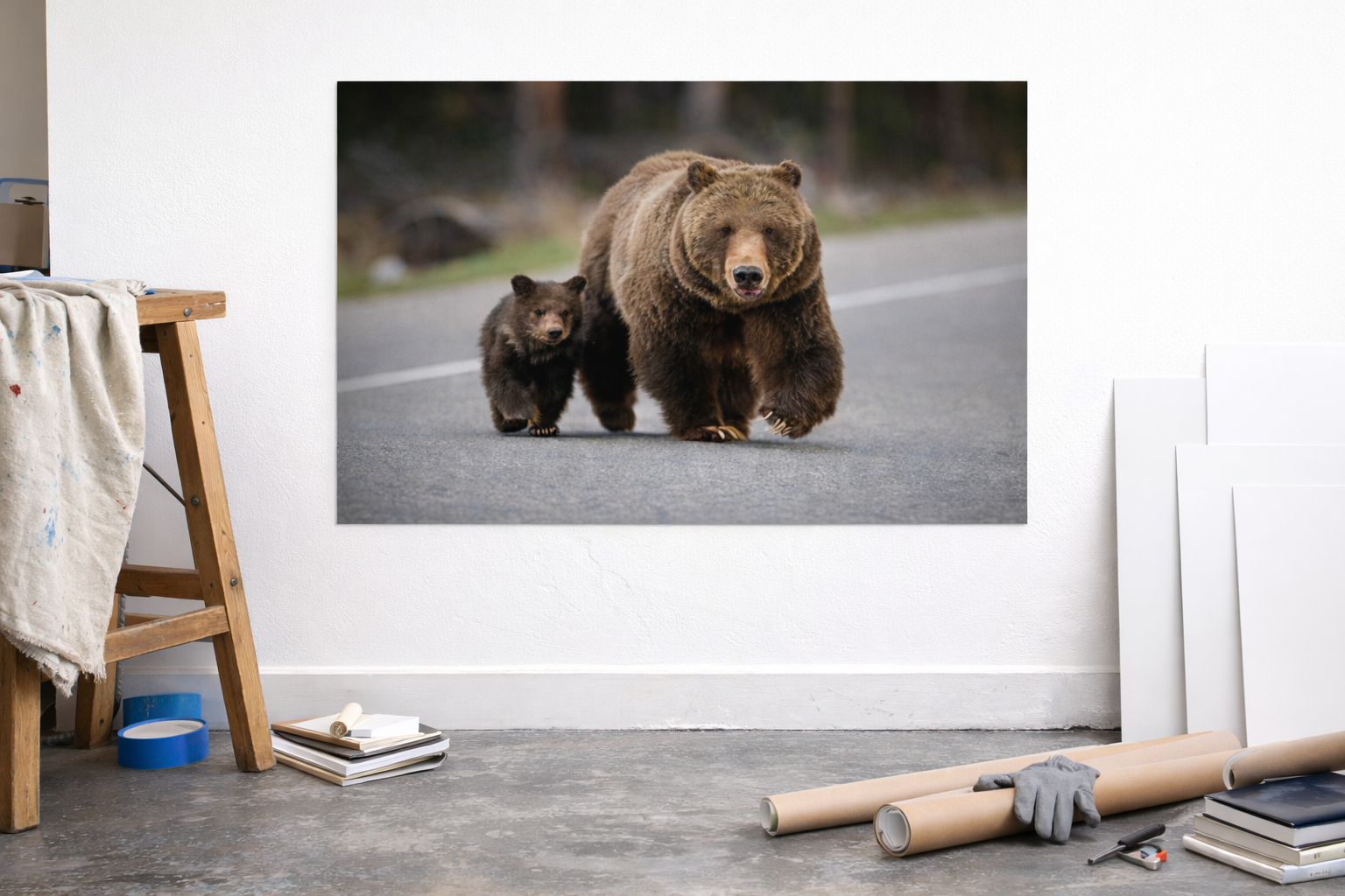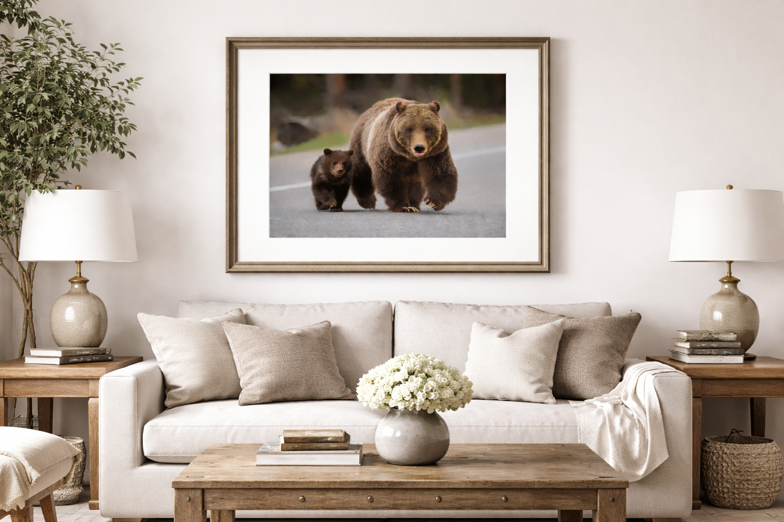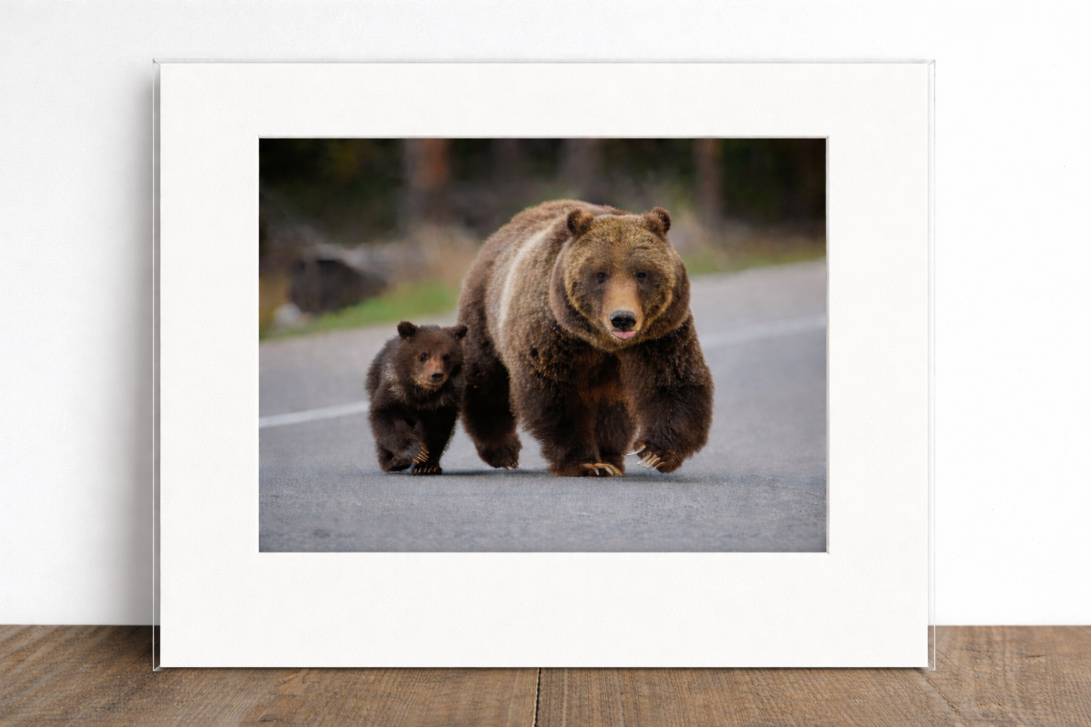 Capture a legendary wildlife moment with this limited-edition fine art print featuring Grizzly Bear 399 and her 2023 cub of the year (COY) walking along Highway 89 during their public debut on May 16, 2023. At 27 years old, 399 is the oldest known grizzly to have cubs in the Greater Yellowstone Ecosystem, and her unique strategy of staying near public roads has helped protect her young from predatory males.