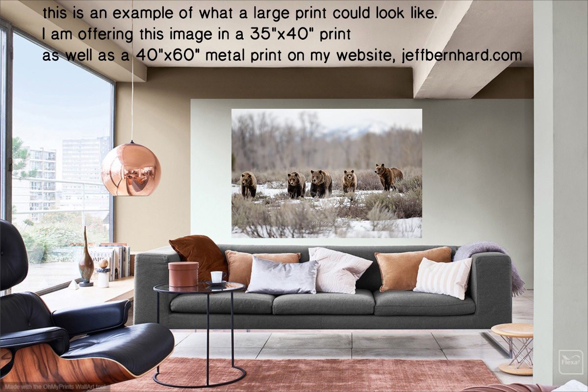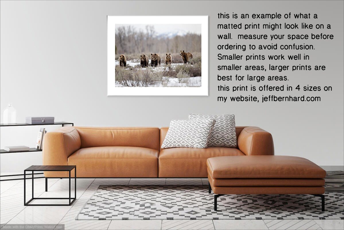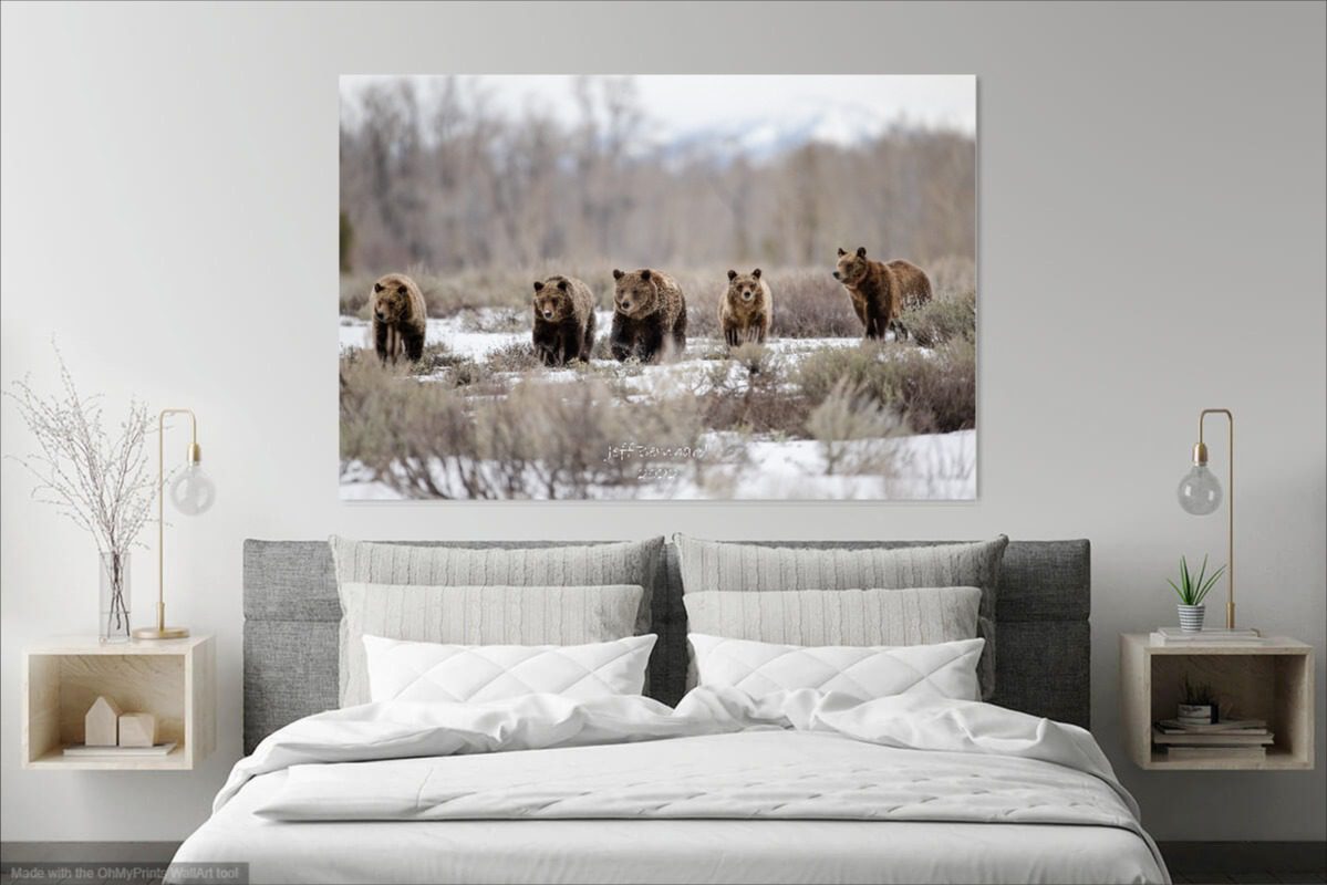 Bring the spirit of the wild into your home with this breathtaking wildlife photography print of Grizzly 399—one of the most famous bears in North America. Captured in Grand Teton National Park by professional wildlife photographer Jeff Bernhard, this photo showcases the beauty, strength, and grace of this beloved grizzly matriarch.