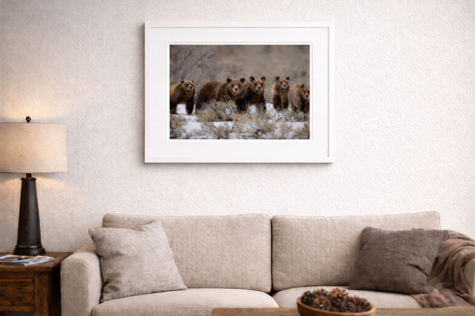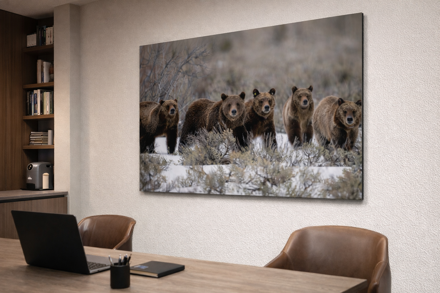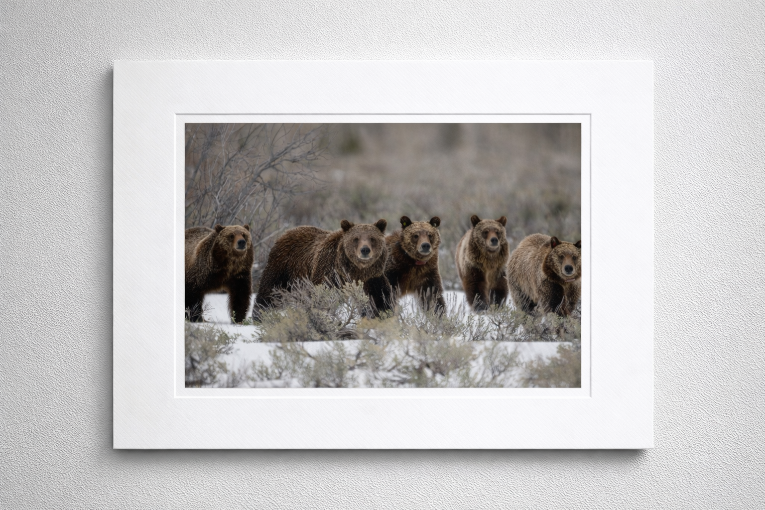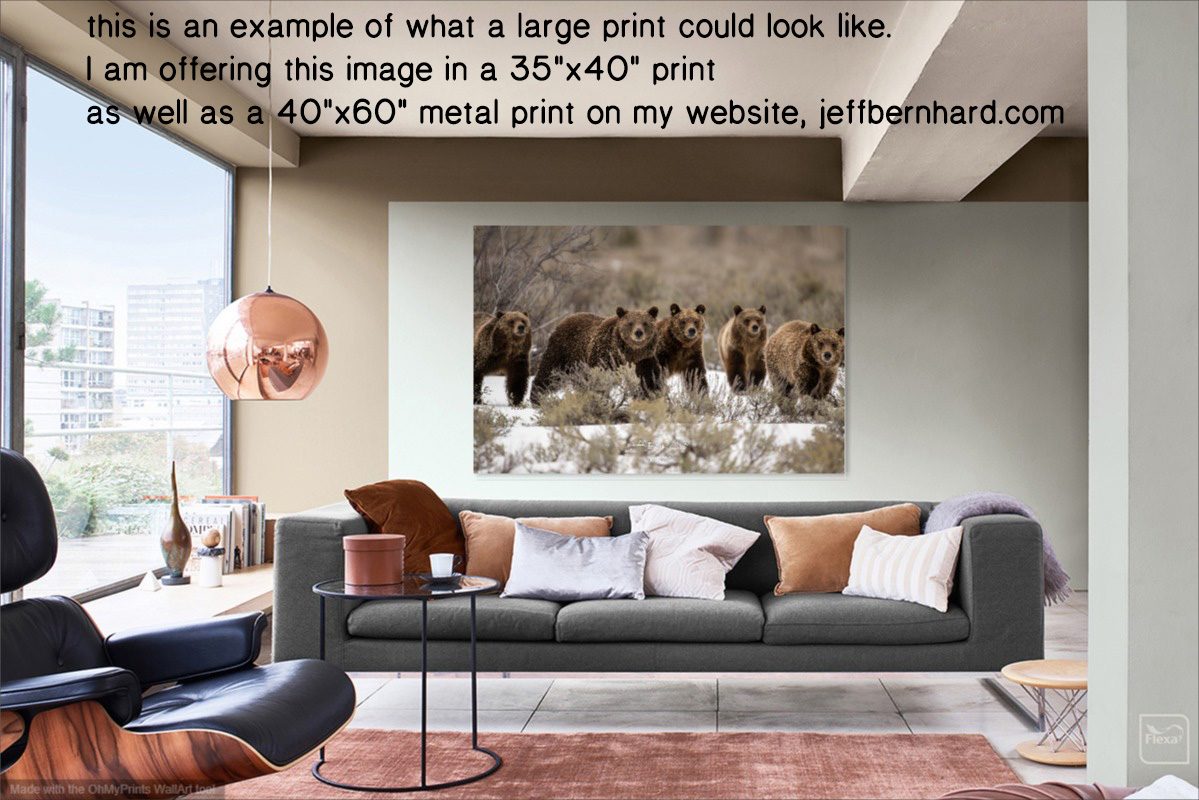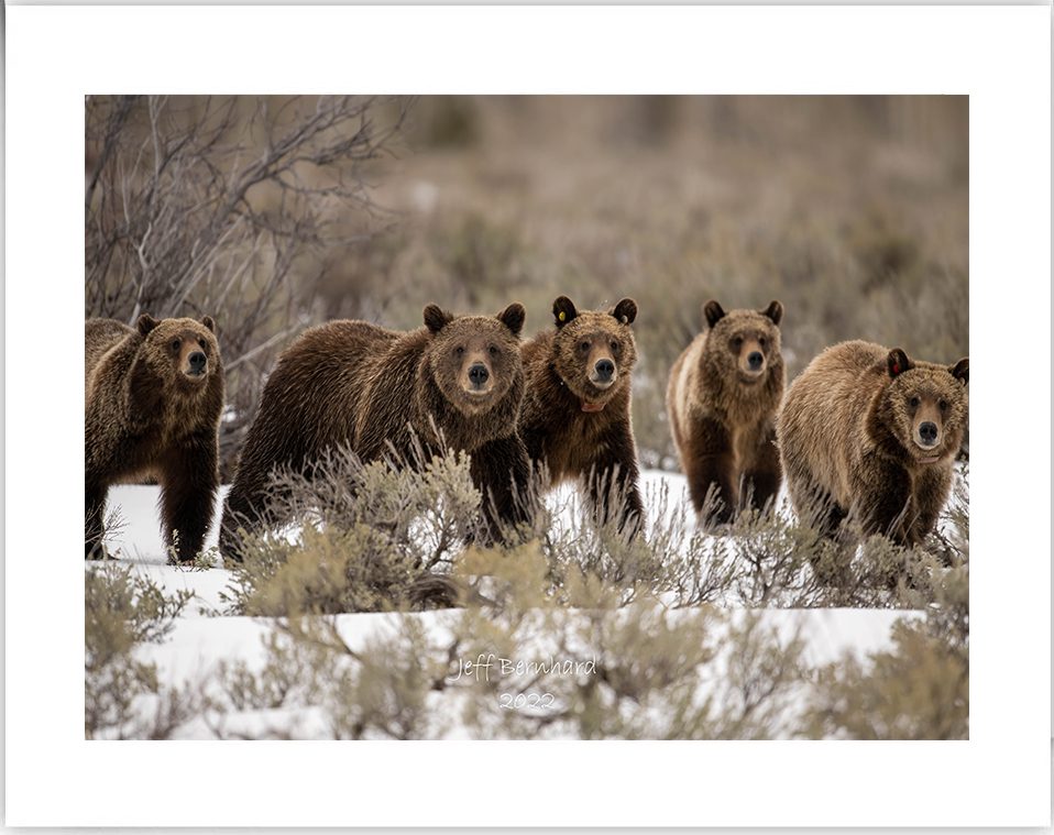 The queen of the Tetons, grizzly bear 399, flanked by her four cubs, marching through the snow in April 2022 after recently emerging from hibernation. There’s something magical about five grizzlies walking through the snow. Now that the family has gone their separate ways I’m super grateful for all the times I got to see them together. Definitely hoping and praying they stay safe and healthy and away from improperly stored trash and feed that could get them in trouble.