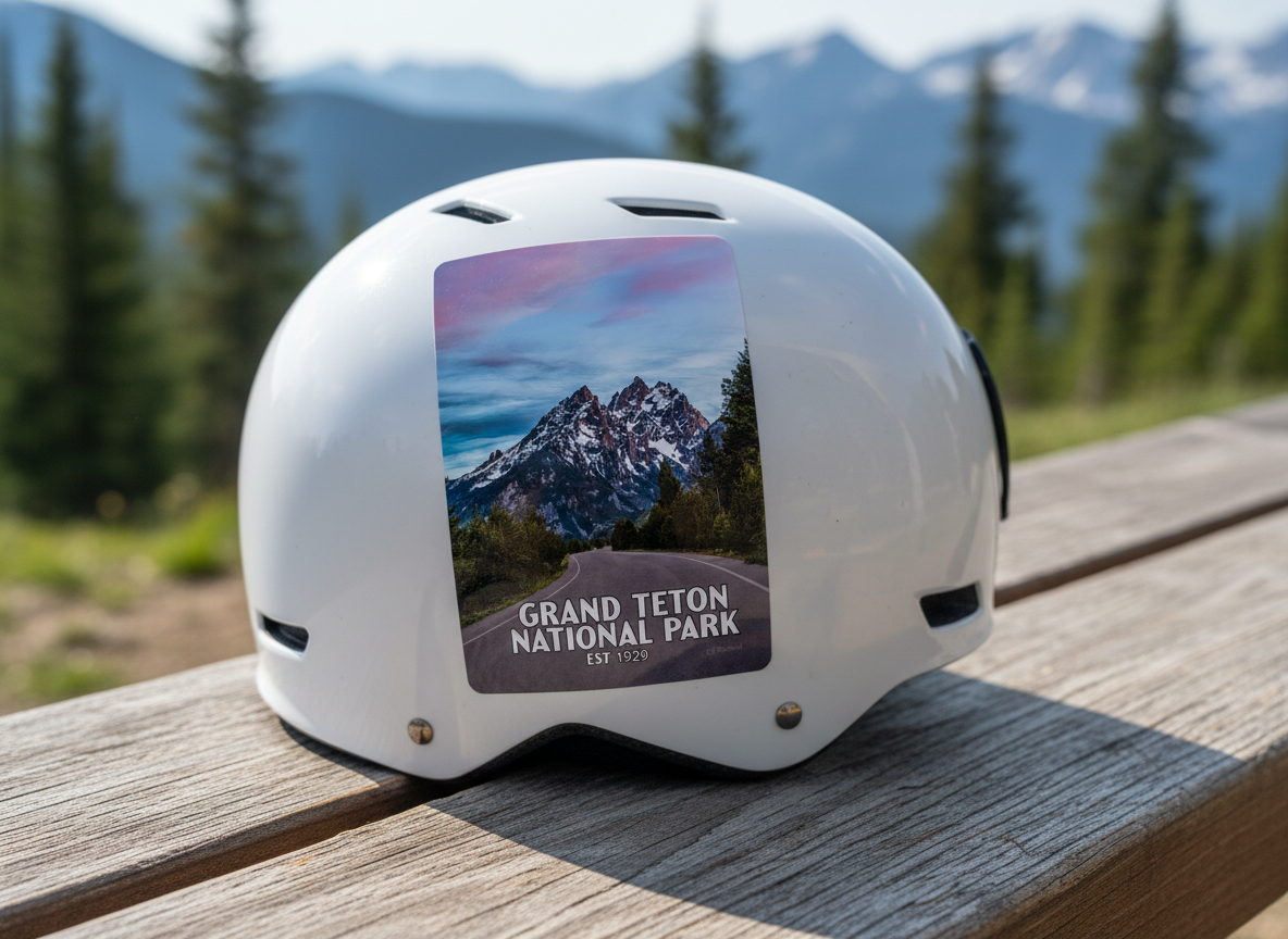 Jenny Lake Road sticker and magnet. Based on an actual photograph of the iconic Jenny Lake Road, this design captures the stunning beauty of the park’s landscape.
