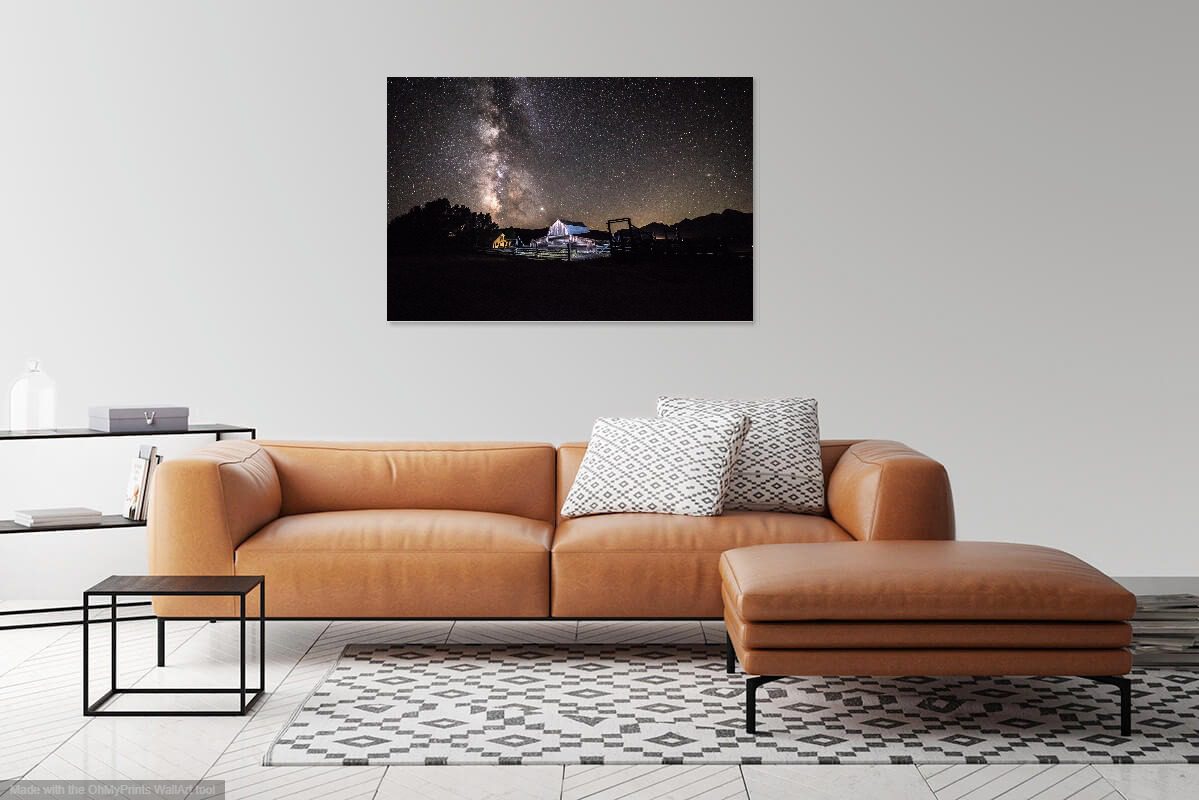 The Milky Way shines over the John Moulton Barn in Grand Teton National Park.