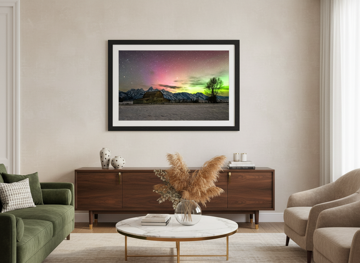 Printed on high-quality archival paper, this open-edition print is perfect for anyone who loves astrophotography, the Tetons, or the magic of the aurora borealis. Available in multiple sizes, each print is carefully crafted to showcase the vibrant colors and stunning clarity of the night sky.