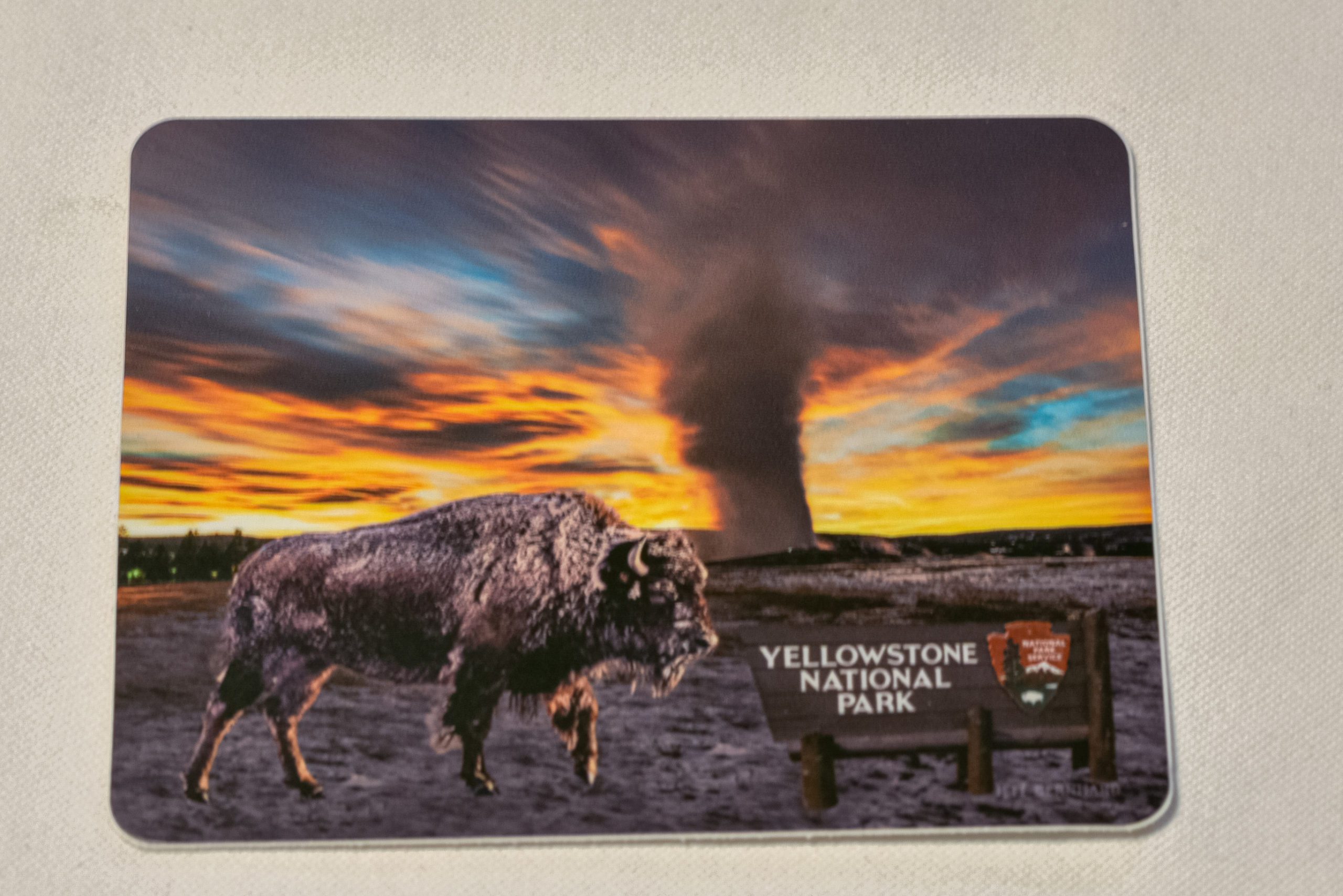 This sticker and magnet is based on my actual photo of the famous Old Faithful geyser erupting at sunset in Yellowstone National Park, with my photo of a bison too. Both the sticker and magnet measure 4” x 3.33″. The Magnet is just .01″ thick. The magnet is flexible and flimsy, not hard or rigid. The durable vinyl sticker is resists scratching, heat, water, and sunlight, making it the perfect addition to any laptop, cell phone, water bottle etc…