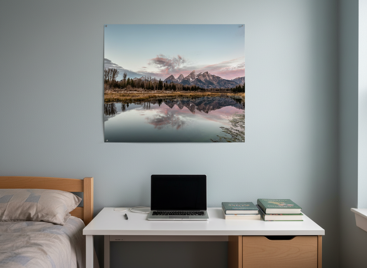 Experience the tranquility of a summer sunrise at Schwabacher Landing in Grand Teton National Park. The calm waters of the Snake River perfectly reflect the towering Teton peaks, creating a breathtaking scene. Schwabacher Landing, once a popular boat launch, is now a peaceful spot that continues to captivate visitors with its stunning views. This photograph captures the essence of the Tetons’ beauty, offering a glimpse of nature at its most serene. Whether you’re a nature enthusiast or a lover of fine art, this piece brings the majestic grandeur of Grand Teton National Park into your space.