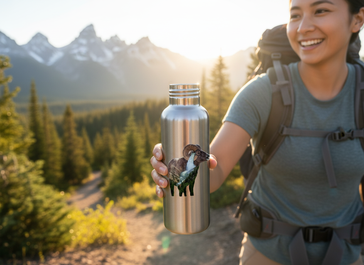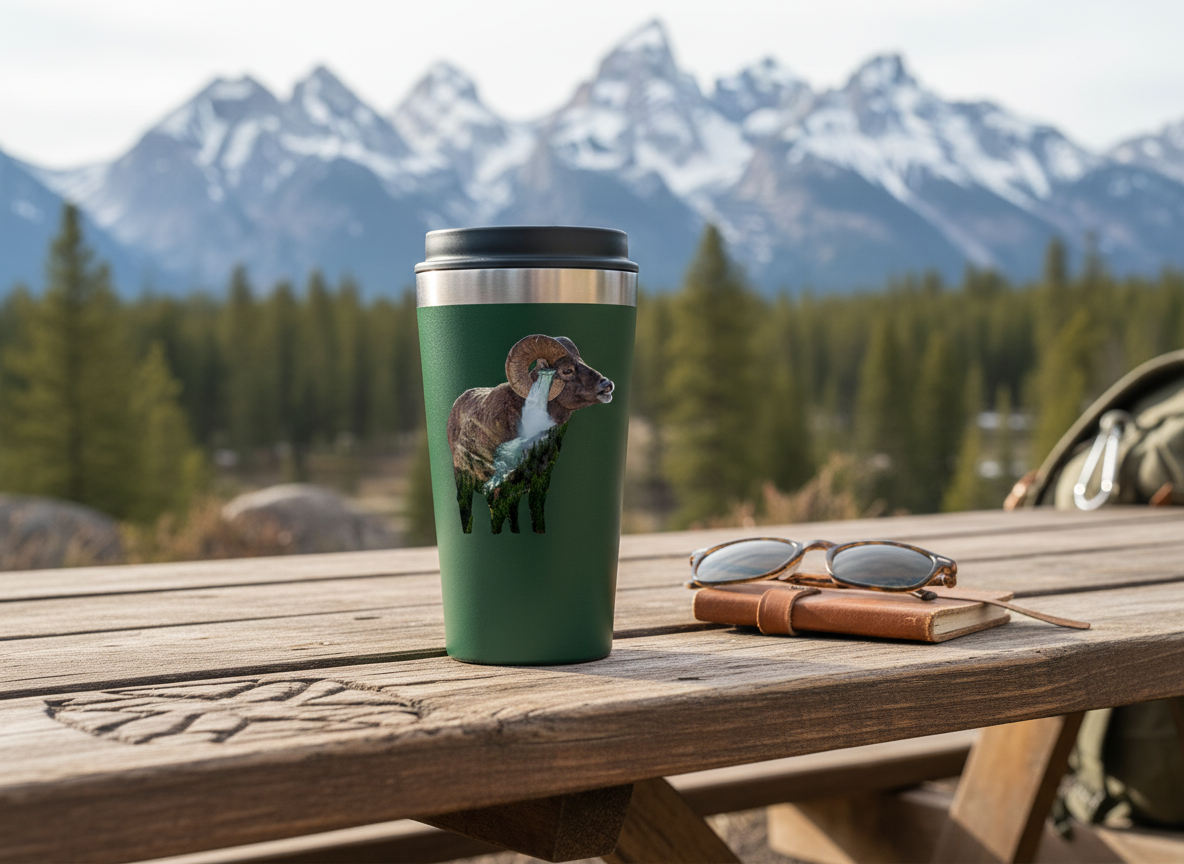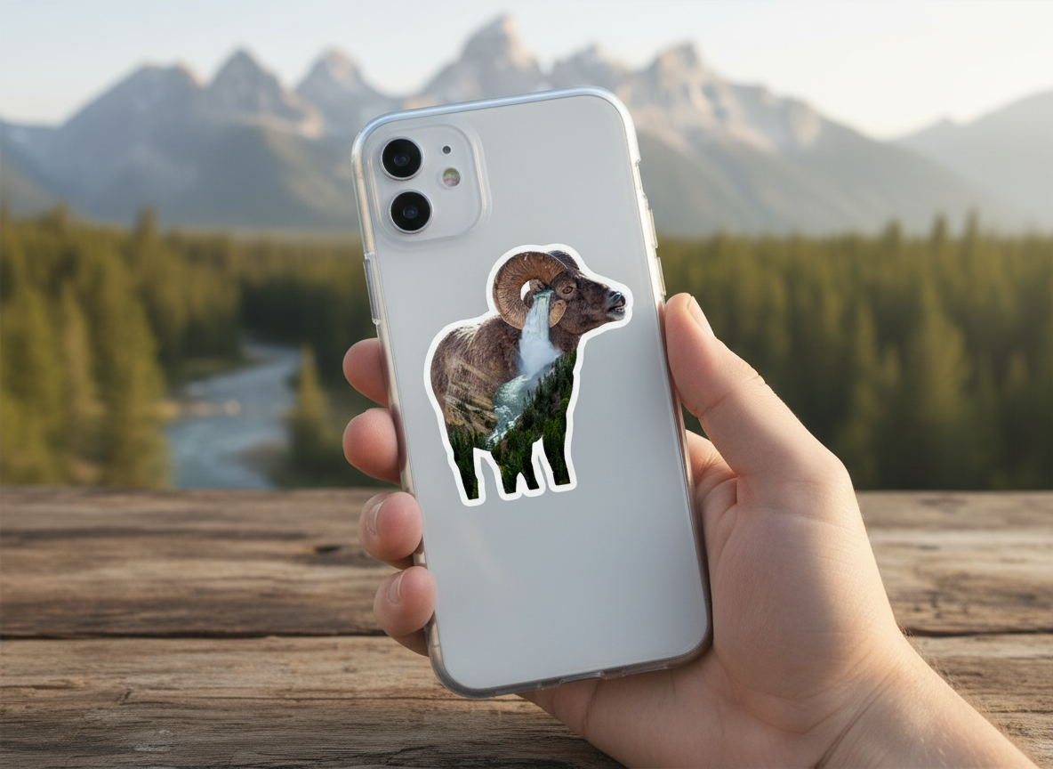 Add a unique touch to your favorite items with this Big Horn Sheep Ram with Yellowstone Falls sticker, featuring a blend of my wildlife photography from Grand Teton National Park and Yellowstone Falls. Made from durable vinyl, this sticker is scratch-resistant, waterproof, and sunlight-resistant, making it perfect for laptops, cell phones, water bottles, and more.