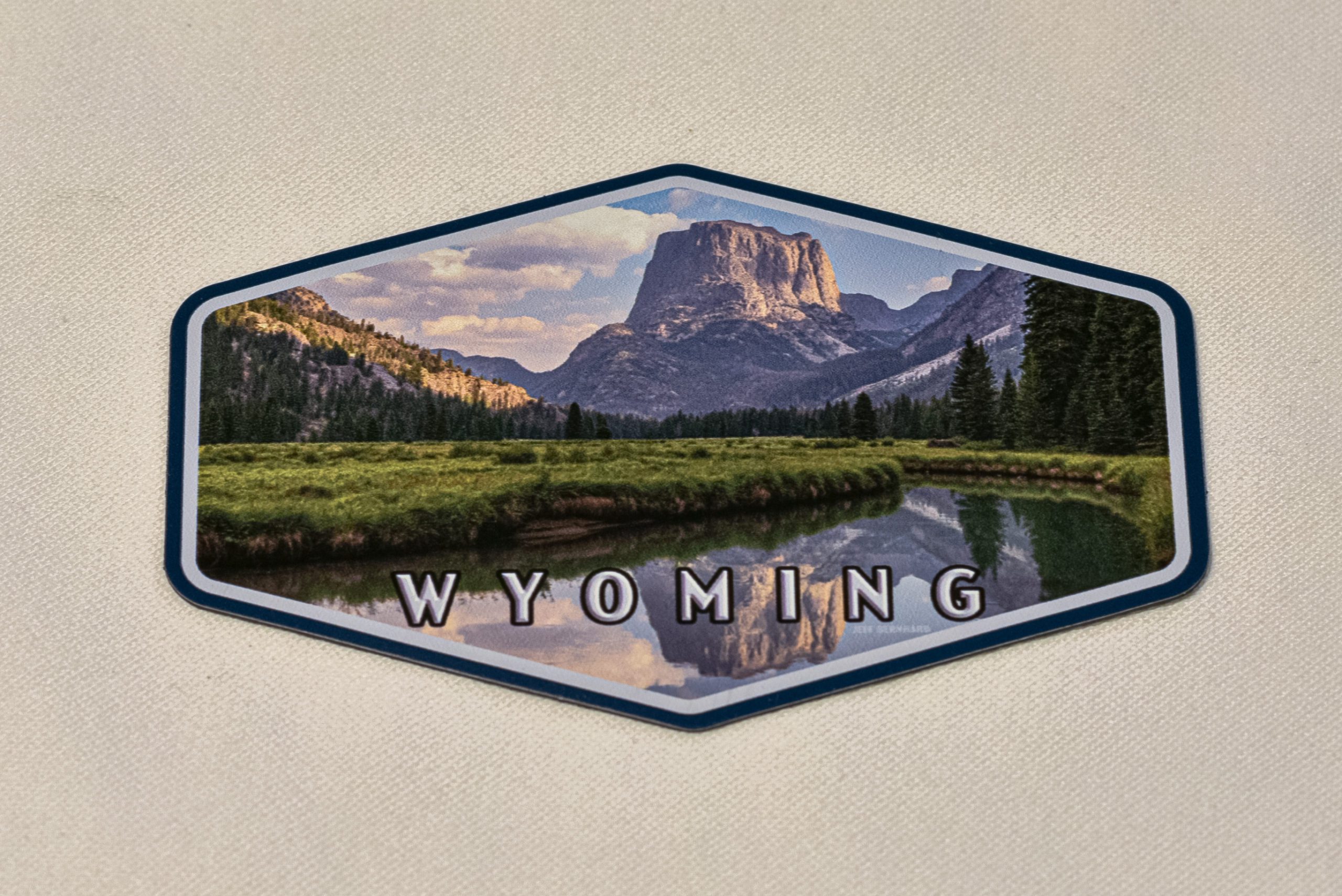 This sticker and magnet is based on an actual photo of the famous Squaretop Mountain in Wyoming. Both the sticker and magnet measure 4″ x 2.62″. The Magnet is just .01″ thick. The magnet is flexible and flimsy, not hard or rigid. The durable vinyl sticker is resists scratching, heat, water, and sunlight, making it the perfect addition to any laptop, cell phone, water bottle etc..