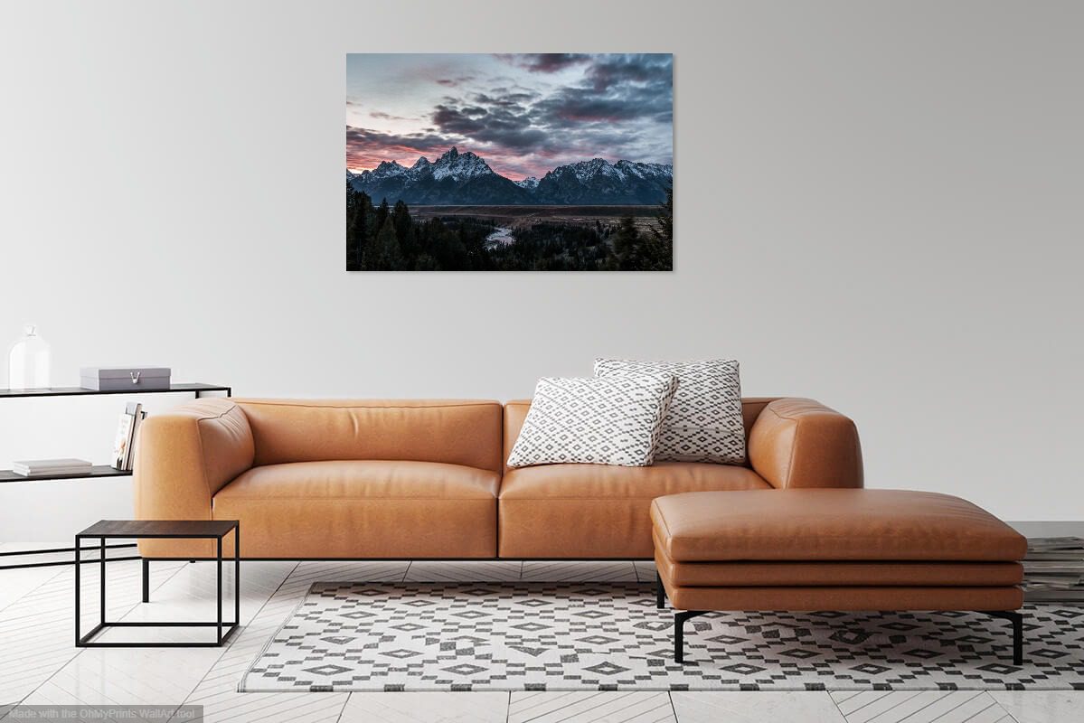 Sunset from the Snake River Overlook. With such a stellar view of the Tetons it’s no wonder Ansel Adams chose this angle for his famous 1942 photograph. The trees have grown, obscuring much of the river but spectacular views of the mountains continue to draw crowds to this iconic location.