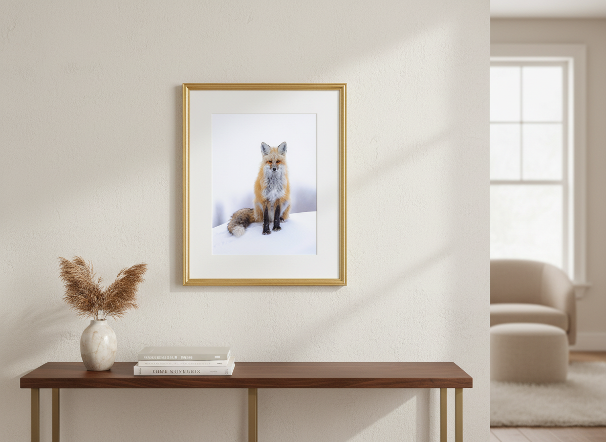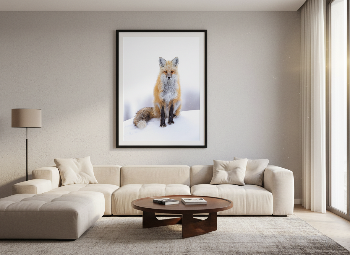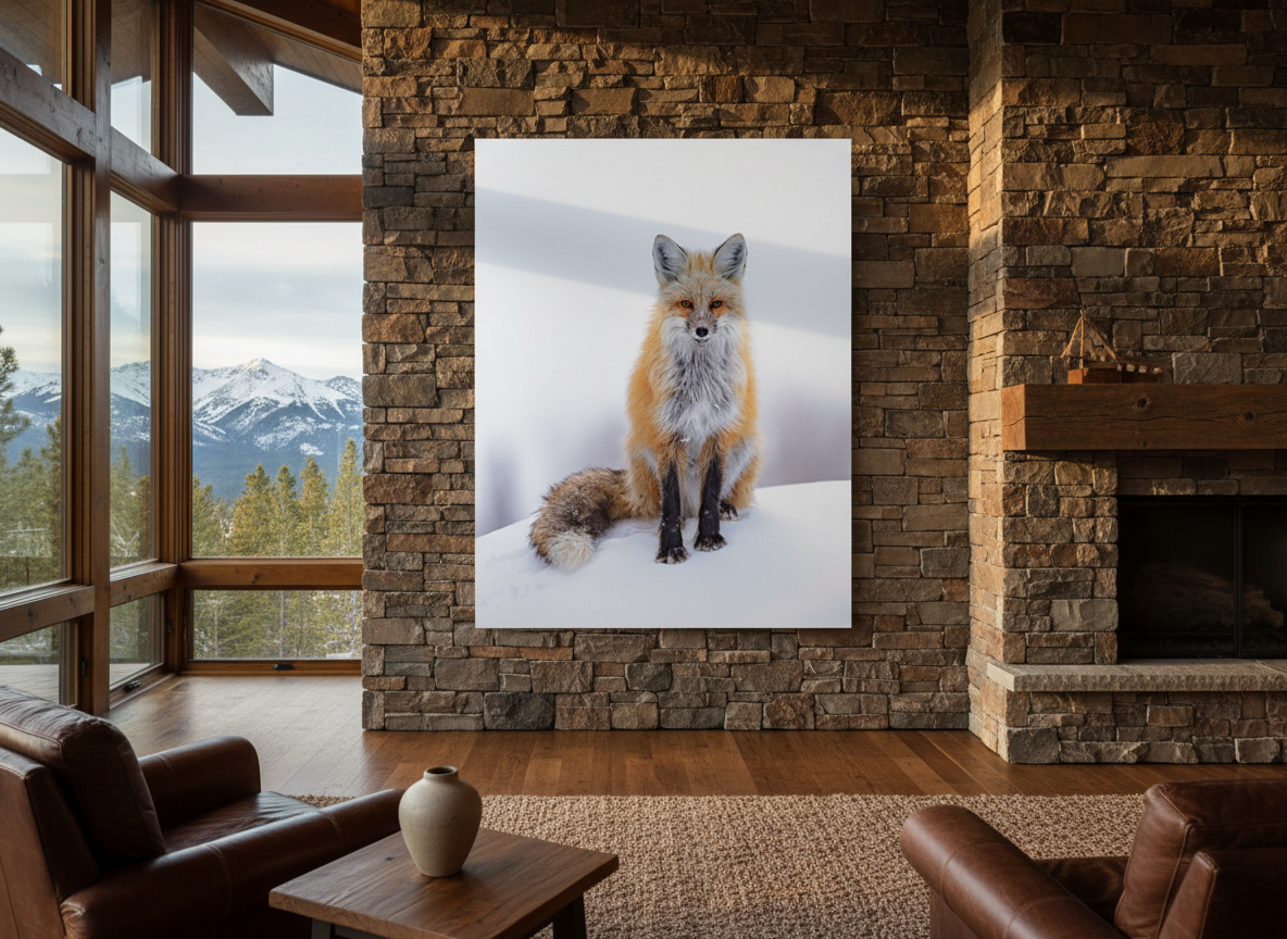Capture the serene beauty and quiet elegance of winter in Grand Teton National Park with this stunning photograph of a red fox locking eyes with the camera. This rare and intimate wildlife encounter showcases the wild charm of the Tetons, where animals like this curious fox roam freely in the winter months. As a resident of Grand Teton National Park since 2010, I have spent years observing and documenting its wildlife, ensuring that every shot is authentic and meaningful. Available as an open-edition print, this image can bring a piece of the park’s natural wonder to your home. Choose from a variety of sizes to suit your space and enjoy the allure of the Tetons in every season.